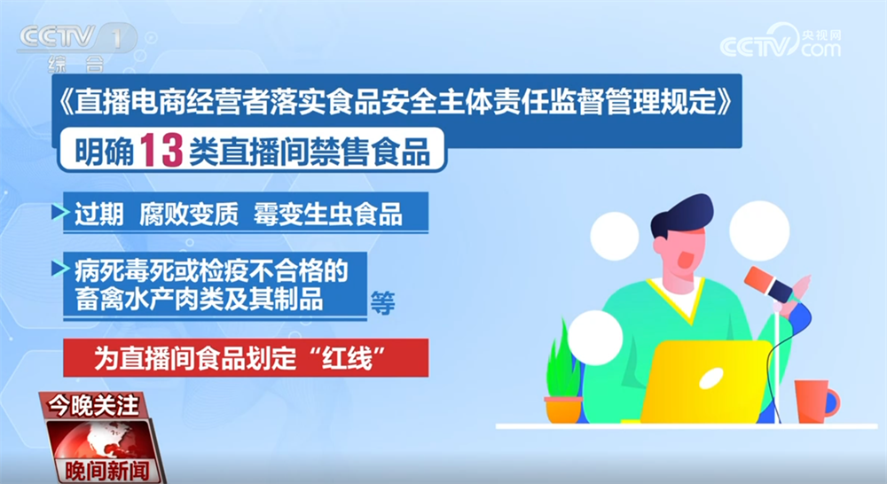 《》明白13类曲播间禁售食物,处理消费者“难”的问题。市场监管总局食物平安总监 孙会川:向社会出一个明白的信号,不管曲直播间里的货,还曲直播间里的人,平台都必需得管;不得对非保健食物声称保健功能等。平台接到赞扬举报后需第一时间处置,若是出了食物平安问题,